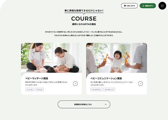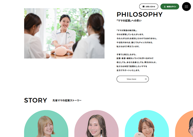 コンセプトを表現する写真やデザイン、コンテンツを充実させて、ユーザーに「ママの起業を支援する協会」という立ち位置がしっかりと伝わるように工夫しました。